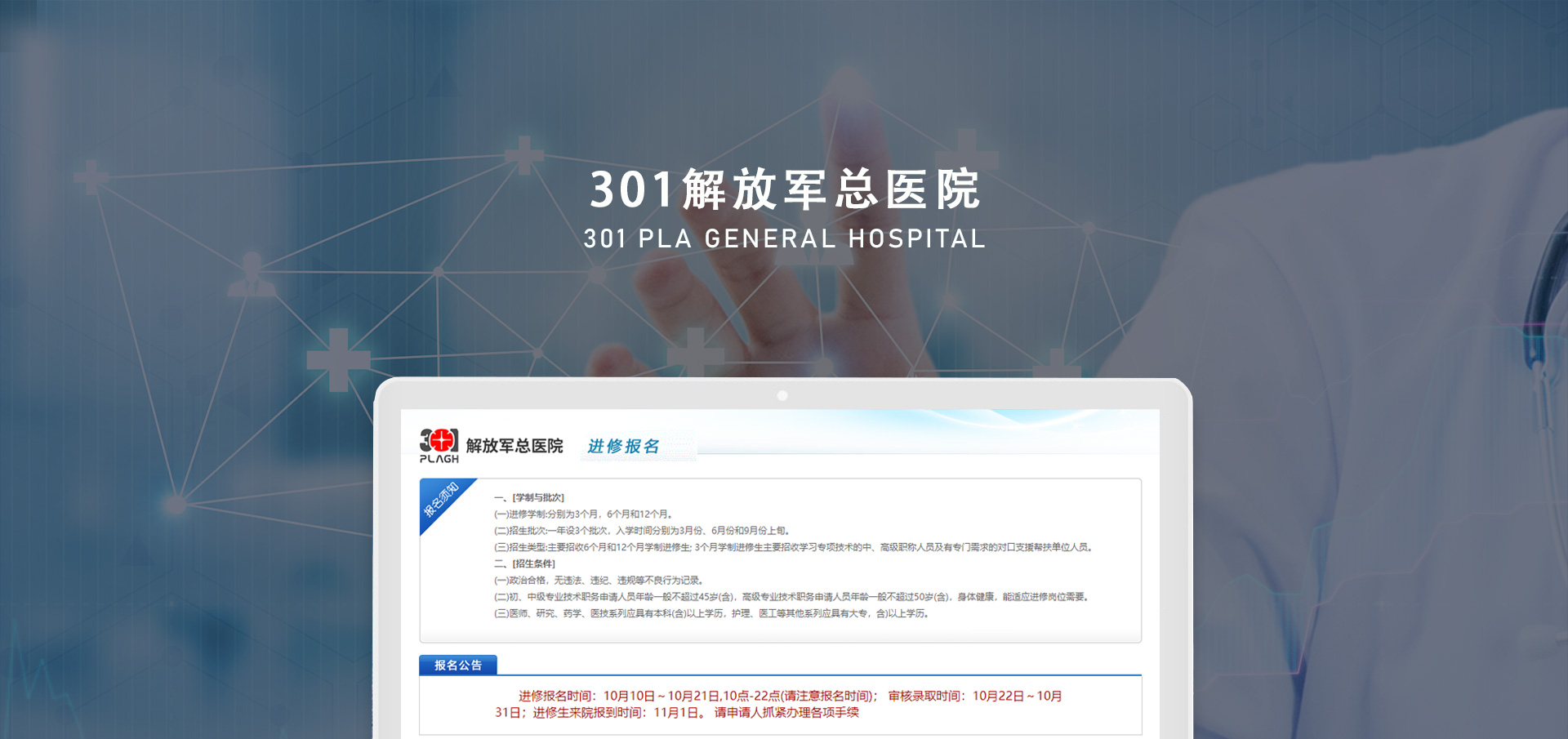 文章标题:解放军总医院301医院进修报名系统开发案例欣赏