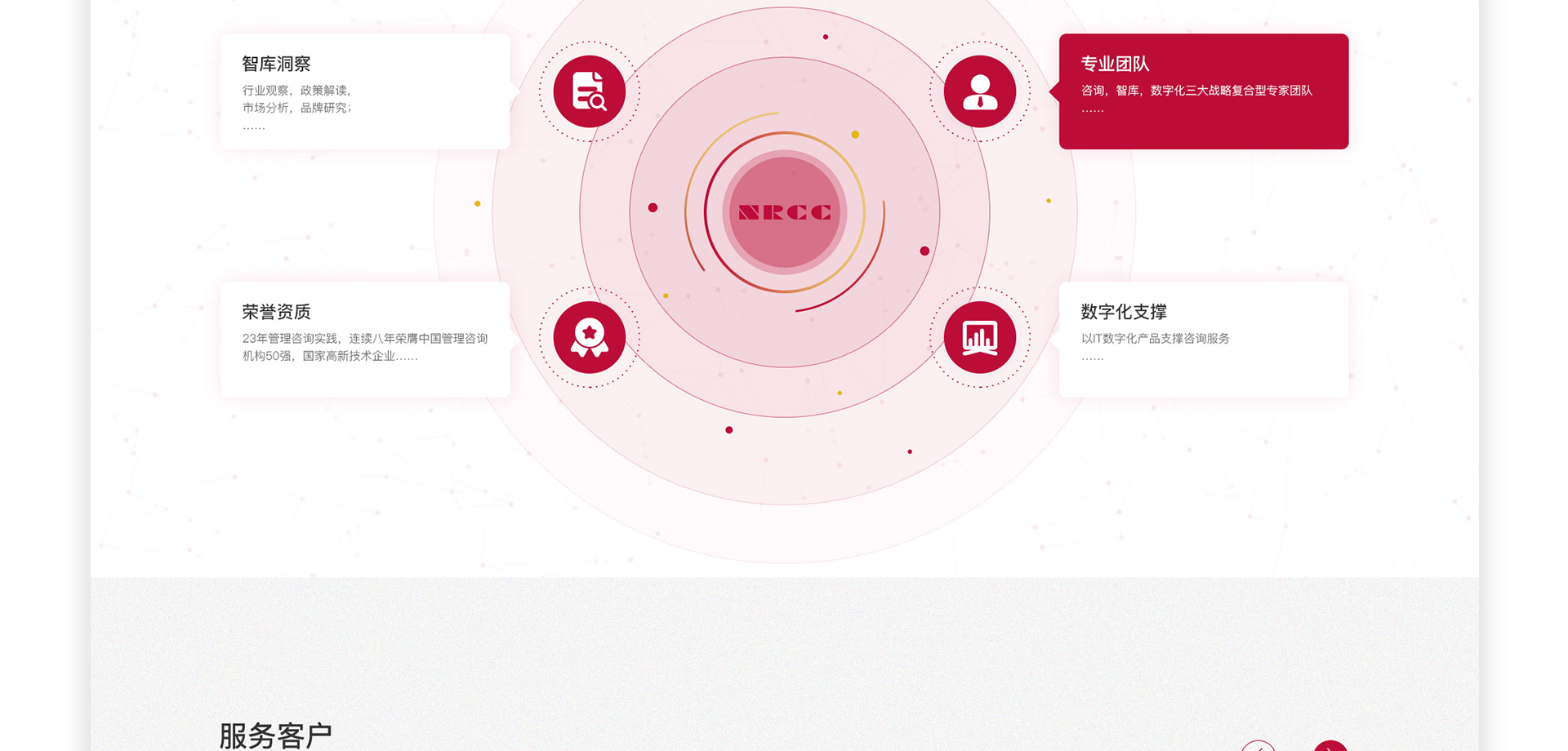 践行“专业 专注 专家”的服务宗旨,以高质高效的咨询交付能力助力客户企业经营效益提升 国研趋势将继续以前瞻性的战略视野、严谨的专业化服务、数字化的产品支撑,引领行业变革,驱动管理咨询创新发展