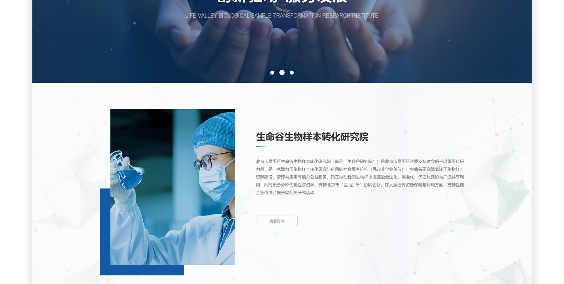 文章标题:北京市昌平区生命谷生物样本转化研究院网站制作案例欣赏