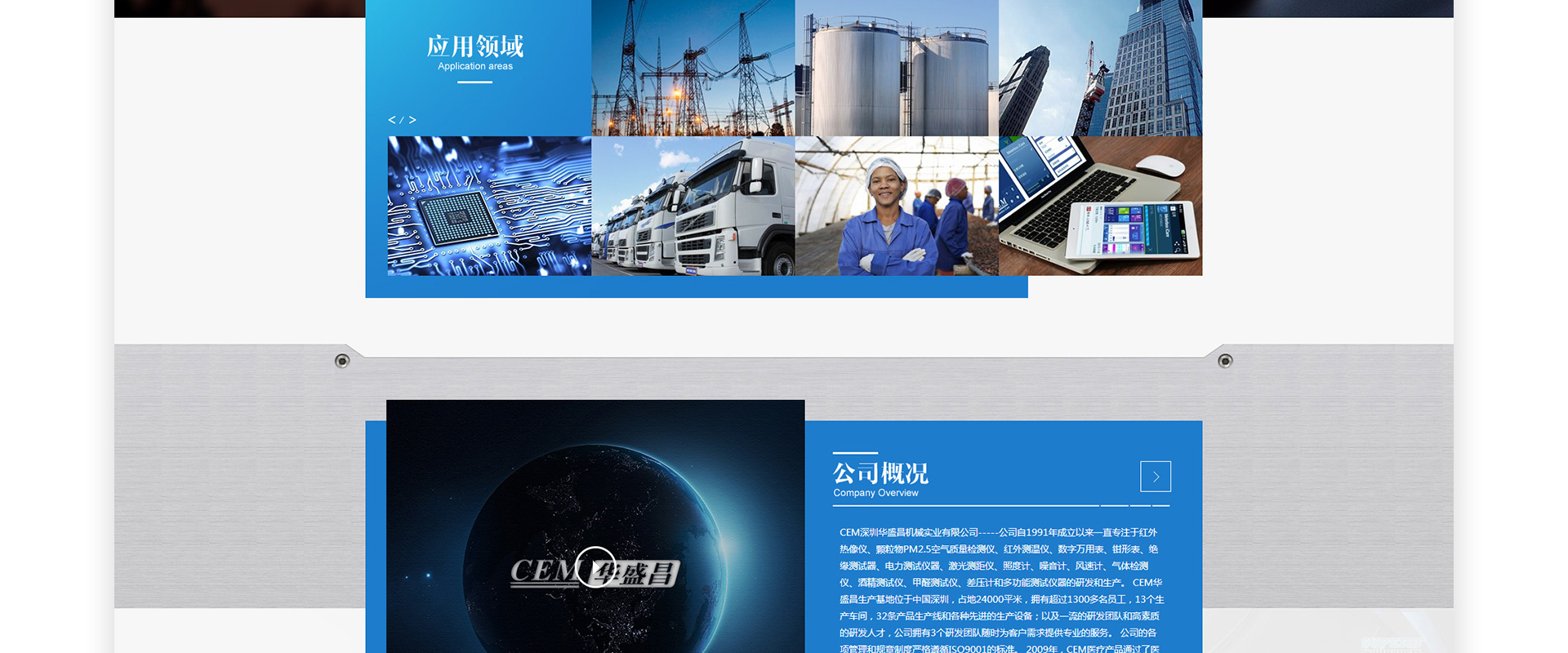 深圳华盛昌机械实业有限公司,简称CEM(China Everbest Machinery Industry Co.,Ltd.),是集专业开发、设计、生产和销售各类测量仪表于一体的高新技术企业,拥有数百项国家实用新型专利和外观专利,是中国仪器仪表行业协会副会长单位,深圳仪器仪表自动化行业优强企业,产品面向于国防,电力,暖通制冷,化工,冶炼,电子制造,科研院所等专业领域。公司创立于1991年,产品远销欧美等90多个国家和地区。