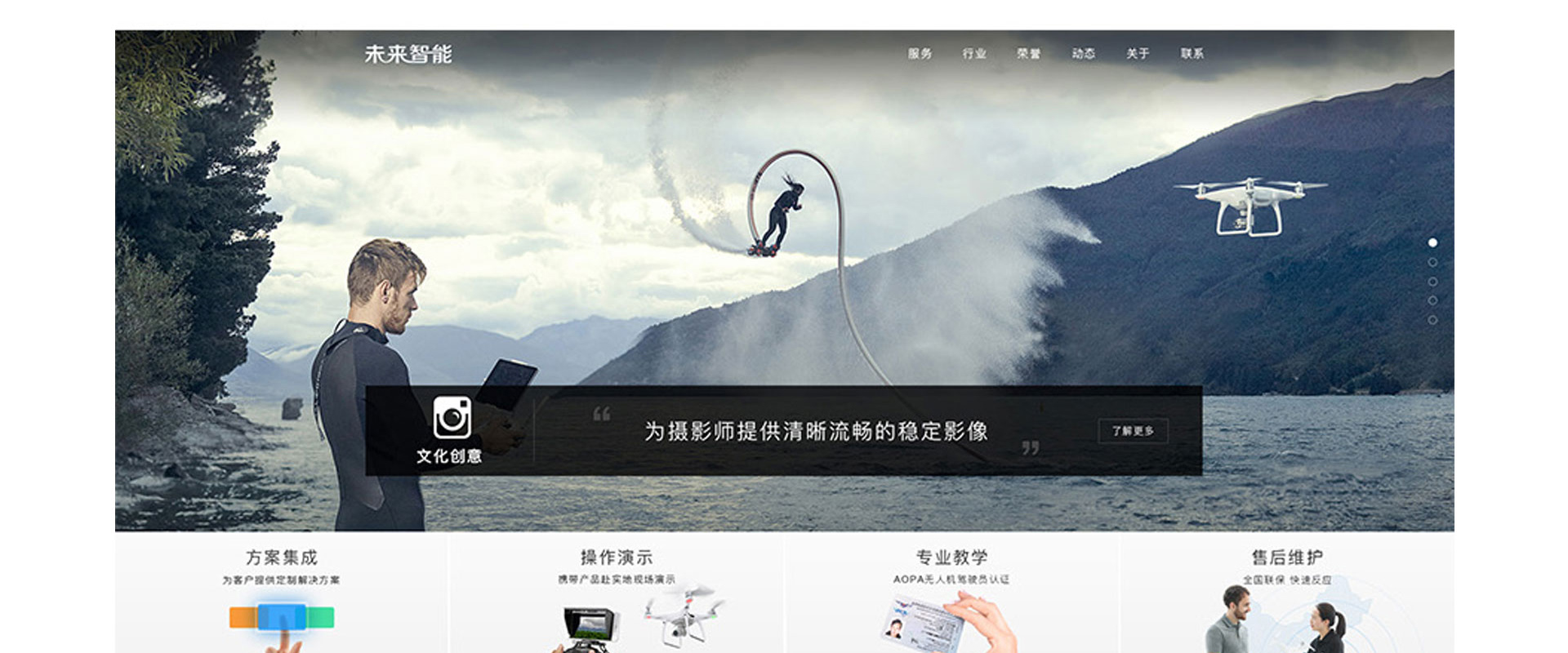未来智能是国内无人机航拍行业应用的领跑者,可提供航拍无人机系统定制,服务外包,飞手培训,售后维修和后期处理等一站式个性化解决放方案,为中国AOPA(中国航空器拥有者及驾驶员协会)民用无人驾驶航空器系统驾驶员培训机构,与央视,新华社,中国大唐,国家电网,北京市公安局等多家中央媒体及央企有深入的合作关系,针对无人机组装、调试、保养、维修、操控和航拍航测、植保、电力林业公路巡检的行业课程不断开拓,实用技术和经验丰富。